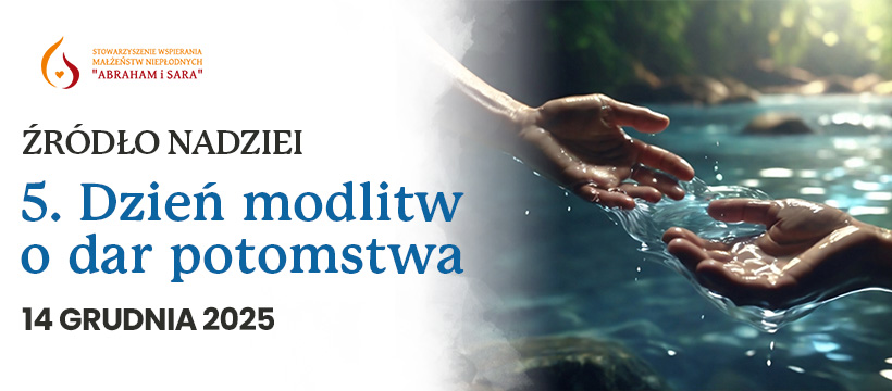 Już po raz piąty Stowarzyszenie Wspierania Małżeństw Niepłodnych „Abraham i Sara” wspólnie z Duszpasterstwem Rodzin Archidiecezji Krakowskiej zaprasza wszystkie parafie i wspólnoty do zaangażowania się w Dzień Modlitw o Dar Potomstwa. W tym roku będzie się on odbywał pod hasłem „Źródło nadziei”. Naszym marzeniem jest, aby wszystkie małżeństwa doświadczające dłuższego lub krótszego okresu oczekiwania na dziecko, miały świadomość, że cały Kościół wstawia się za nimi, że prosi o owoce ich miłości, że towarzyszy im w ich ogromnej tęsknocie. Jest oczywiście wiele miejsc, gdzie takie pary mogą znaleźć wsparcie i zrozumienie, ale wciąż jest ich za mało! Małżeństwa niepłodne często mówią o swoim osamotnieniu w Kościele, a czasem nawet o odrzuceniu. Dlatego szczególnie ważne jest, aby to lokalna wspólnota parafialna otaczała ich modlitwą i troską.